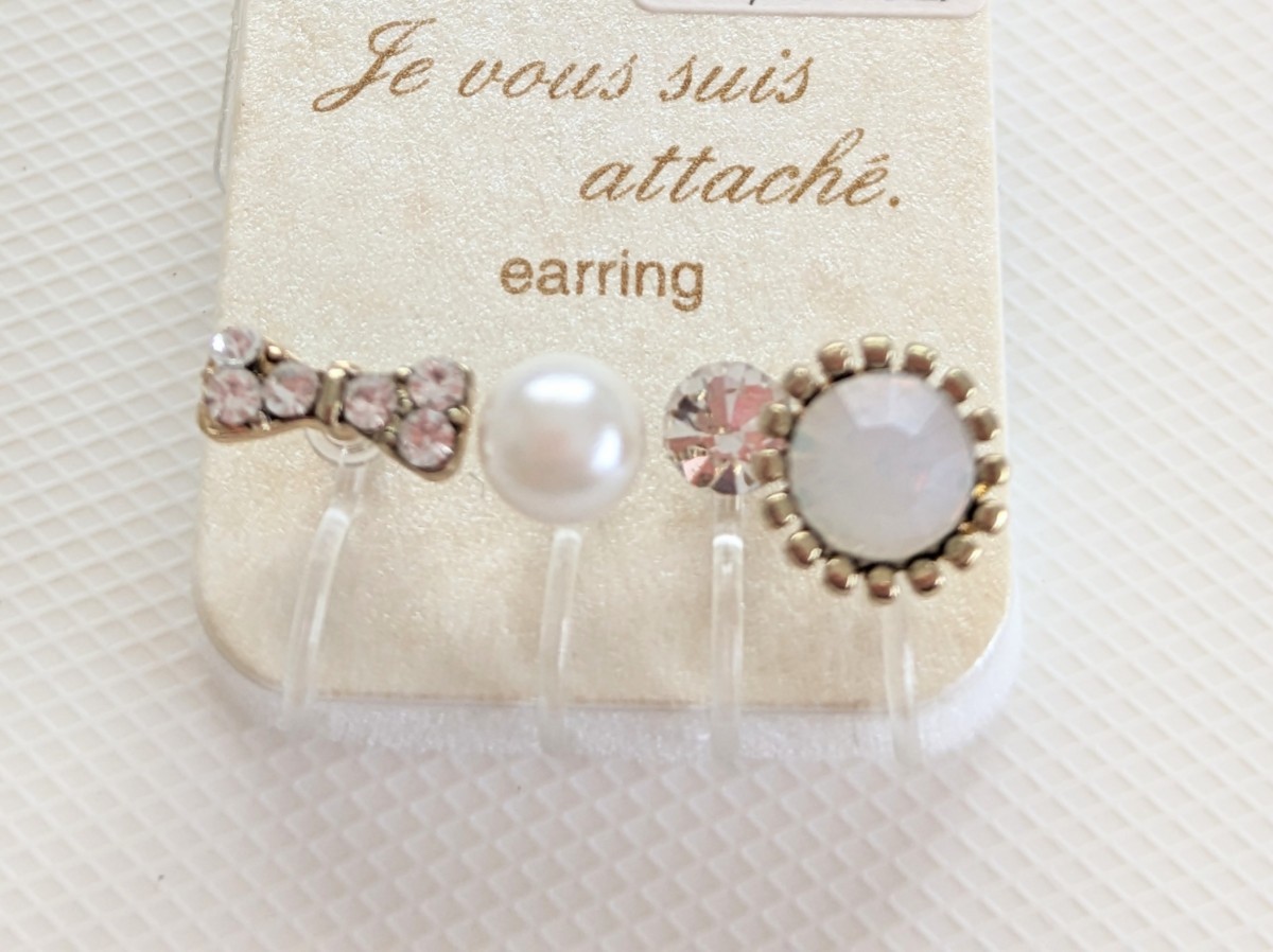 - 新品未使用 クリアーストーン パールビーズ 樹脂 イヤリング