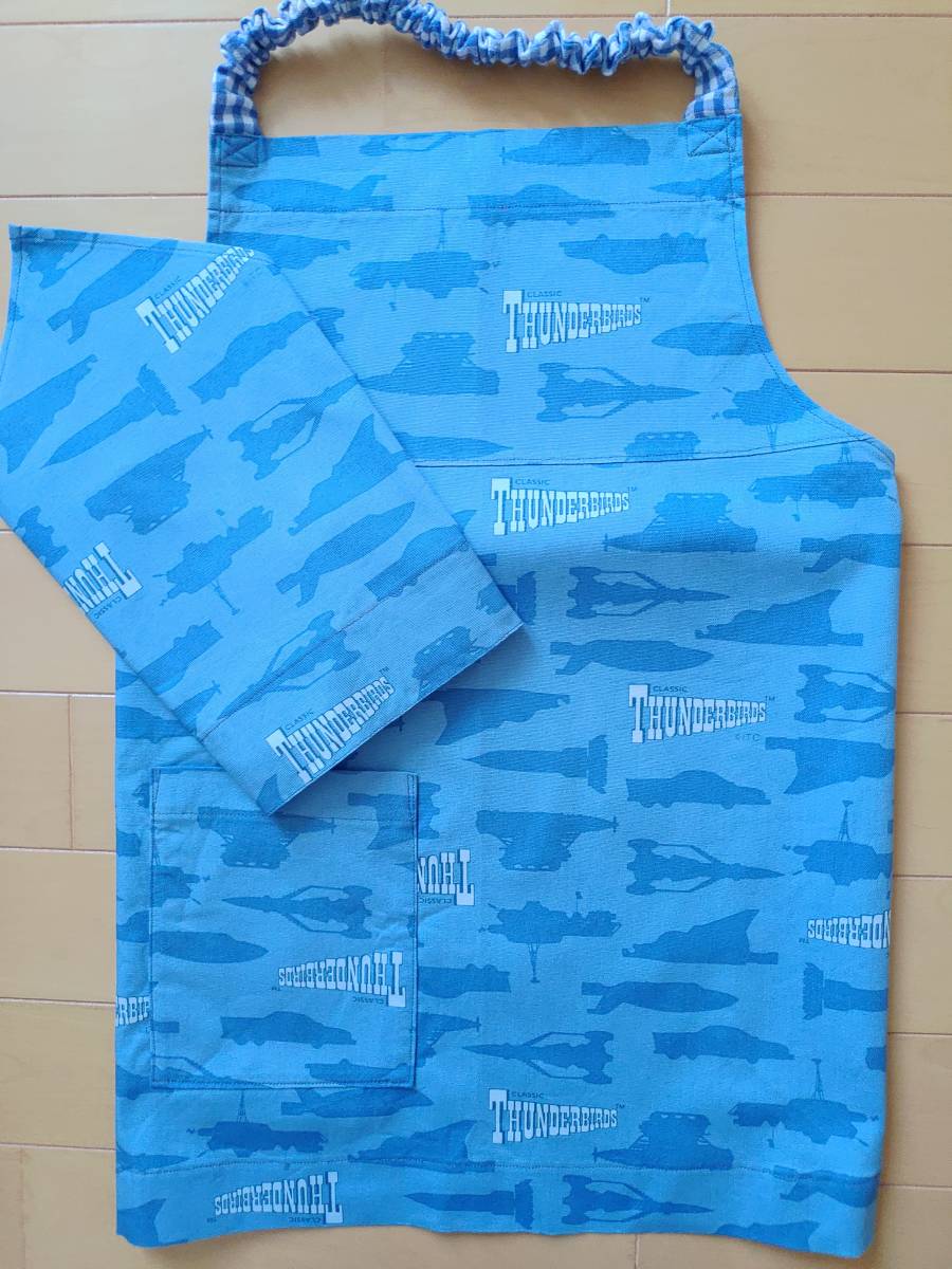 - ☆ハンドメイドエプロン2点セット 120前後 サンダーバード柄 ポケット付 ☆