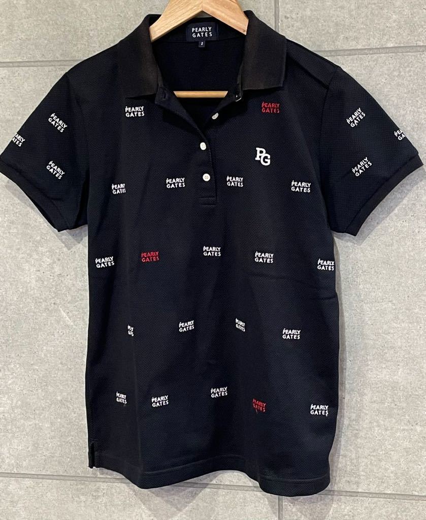 - 夏本番! PEARLY GATES パーリーゲイツ 速乾性 .半袖 ポロシャツ 総柄 ロゴ刺繍 ネイビー系 2サイズ レディース ゆうパケ可 ◯ 新規×