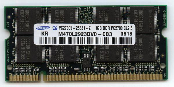 - ノ-ト用メモリ-1GB PC2700(PC2100対応) 200pin[IBM,DELL,Epson]即決 相性保証 中古