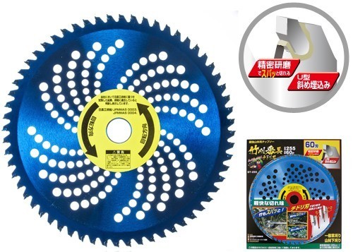 刈払機用チップソー 竹刈番長 1枚 山林下刈り POINT1:竹・雑木もスパッと切れる POINT2:強力斜め埋め込み サイズが255mmと230mmの2種類御座います。 落札後、発送先ご連絡時に、サイズをご指定下さい。 追加も承りますので、その際は合わせてご連絡下さい。 折り返し、合計金額ご案内させて頂きます。 画像は代表の255mmタイプとなっております。 ■仕様 255mmは、60P 230mmは、56P 送料必要(離島は質問より要見積り) 追加のご注文の際も、送料設定は変わらずに対応させて頂きます。 営業時間:平日AM9:00~PM18:00 休日:土・日・祝日・GW・夏季・年末年始 定休日に頂いたご注文・お問い合わせ等は翌営業日以降順次対応いたします。ご迷惑をお掛けいたしますが、宜しく御理解願います。