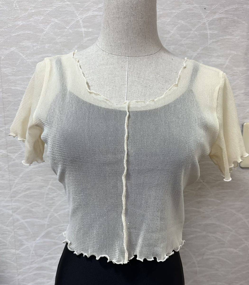 - バレエ/ピラティス/ヨガなど シアー半袖ショートトップス メッシュ ベージュ/クリーム S