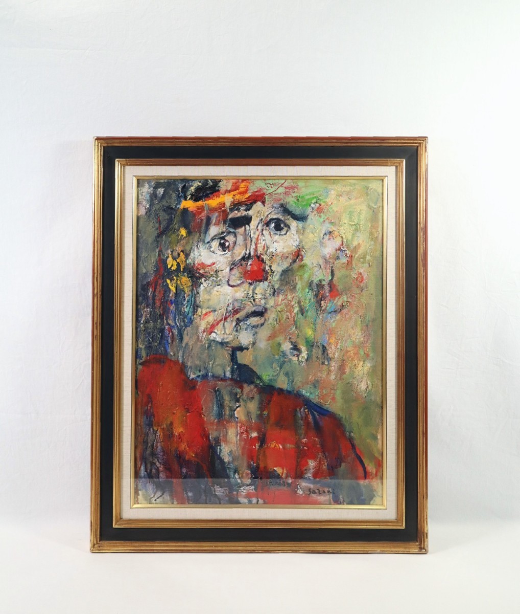 > 真作 佐崎紘一 油彩「道化」画寸 50cm×65cm P15 中国ハルビン出身 無所属 独特の色使いに力強い筆致、厚塗りマチエールで表現 7808