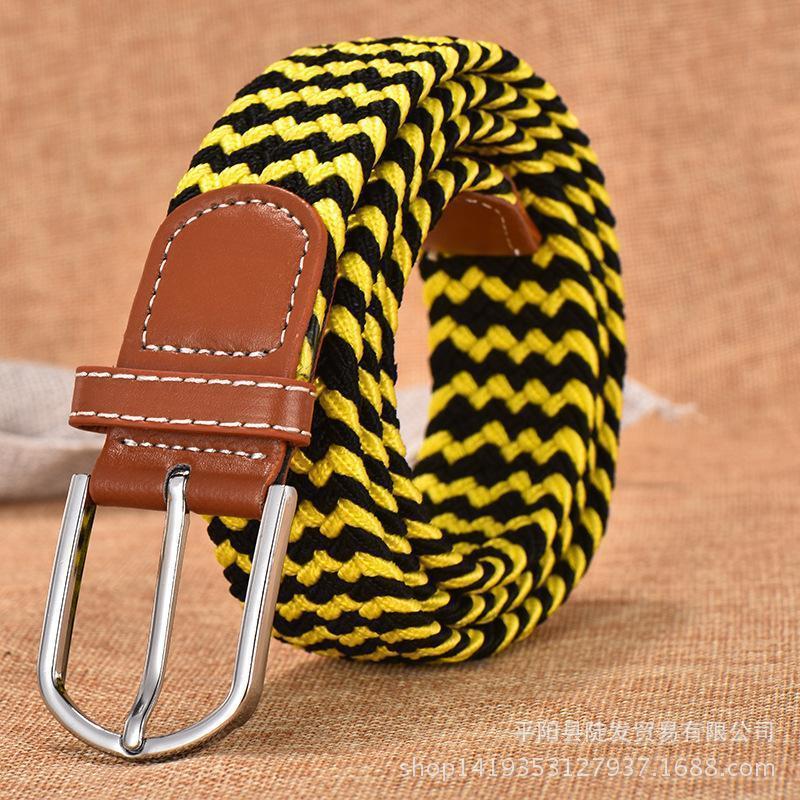- 【イエロー&ブラック】3.0cm 編込み ゴムベルトシルバー バックル 銀