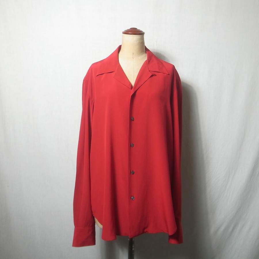 > 90s ヴィンテージ Ralph Lauren ラルフローレン シルク オープンカラー 長袖シャツ 10 赤 / レディース ブランド古着 シルクシャツ