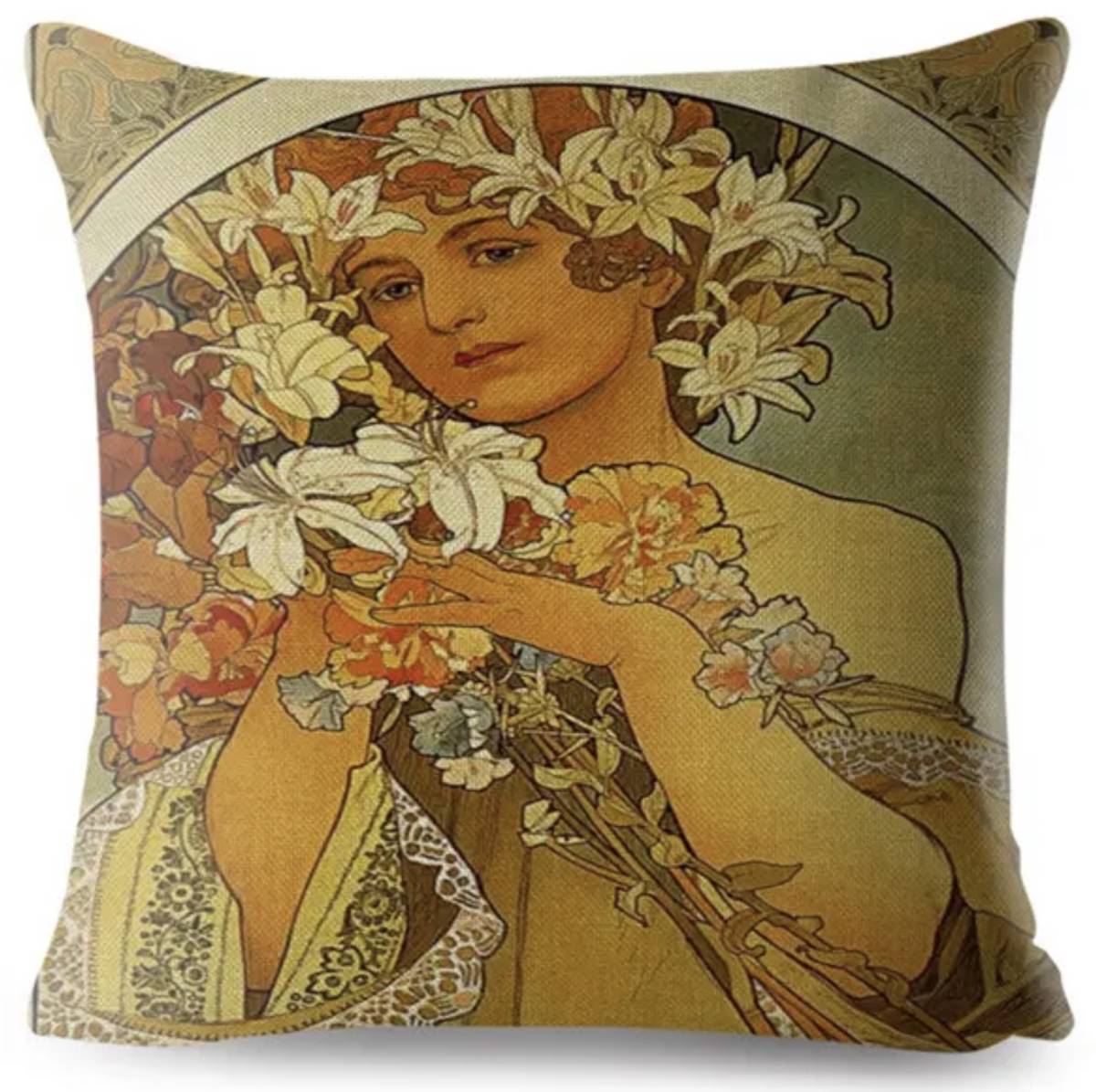 > 送料無料★即決新品★アルフォンスミュシャ柄★ポリエステル素材クッションカバー1★枕★ソファー・ベット★インテリア