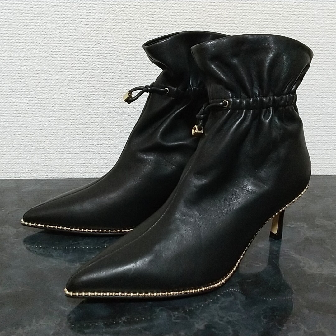 > 【定価44000円】COACH コーチ ワイニーブーティ スタッズ ヒールブーツ 黒 ブラック サイズ6 23.0 レザー 革靴 レディース