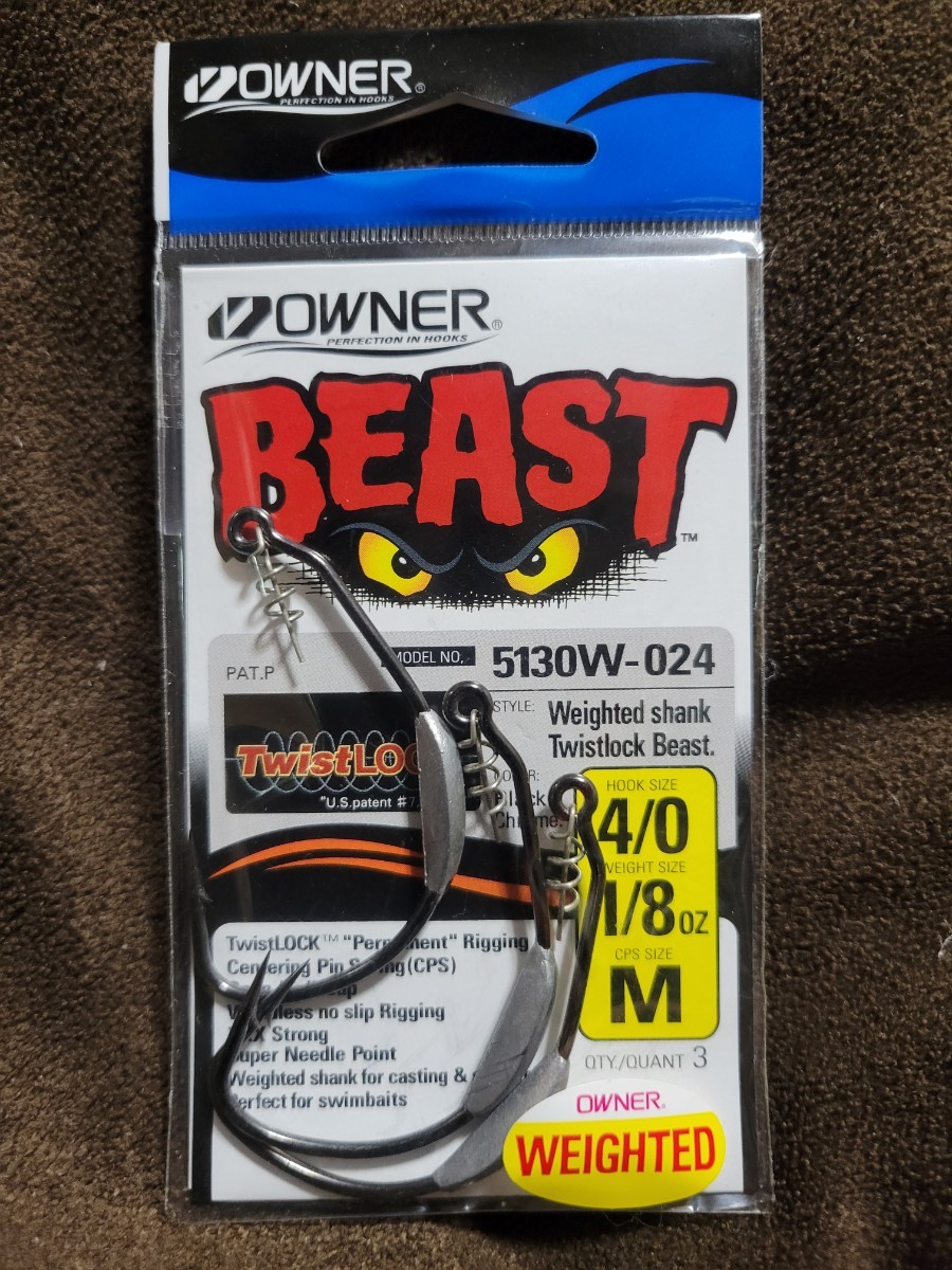 - ★OWNER★BEAST Weighted shank Twistlock Beast Hook Size 4/0 Weight Size 1/8oz CPS Size M オーナーばり ウェイテッド ビースト 新品
