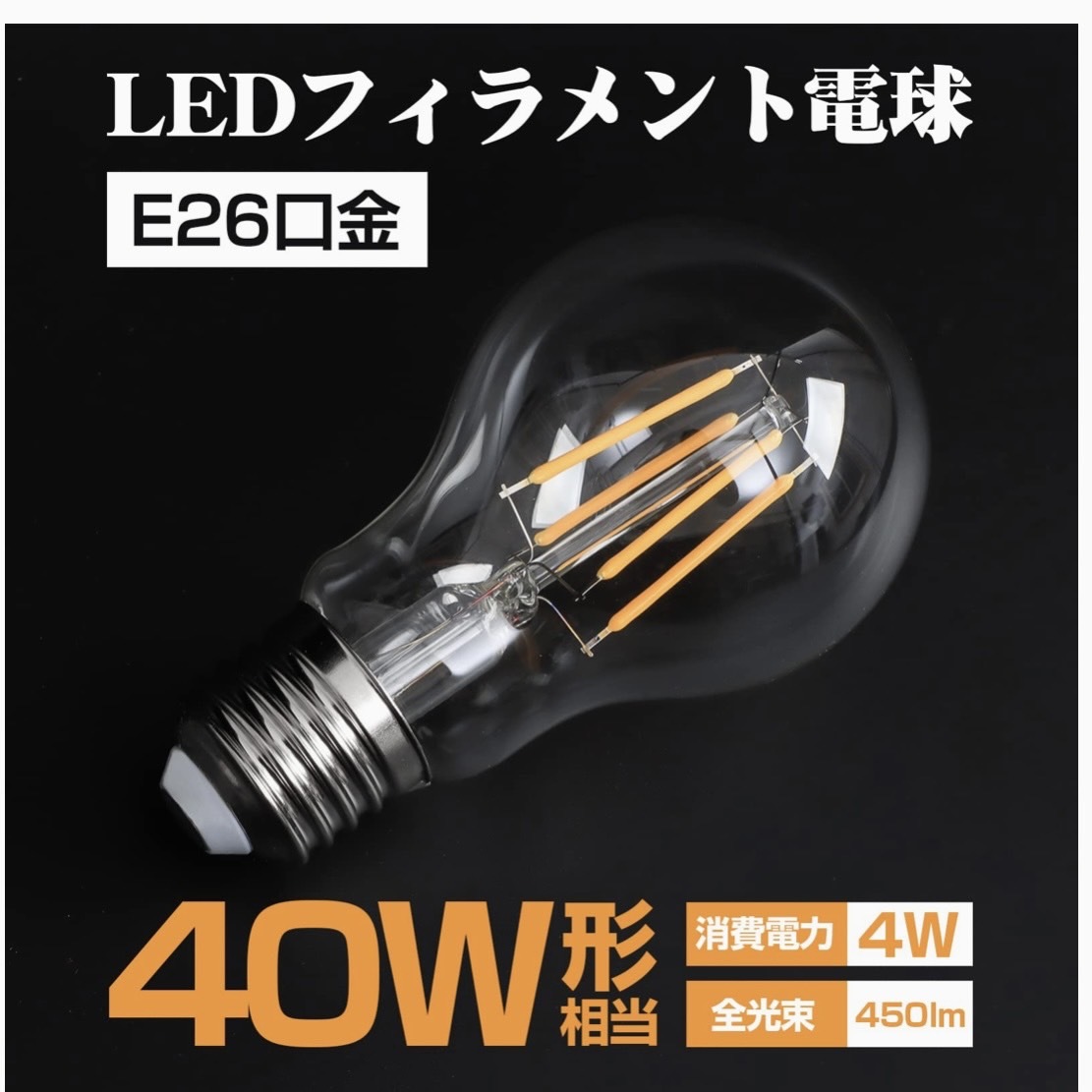 - Tengyuan LED電球 エジソン電球 E26口金 フィラメント電球 40W形相当 電球色 4W 450lm 省エネ レトロ クリア電球