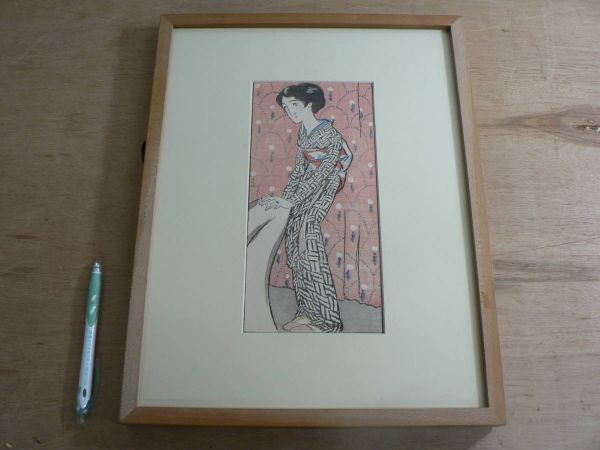 - s 竹久夢二 寝椅子 木版画 大正13年 婦人グラフ 額装済み
