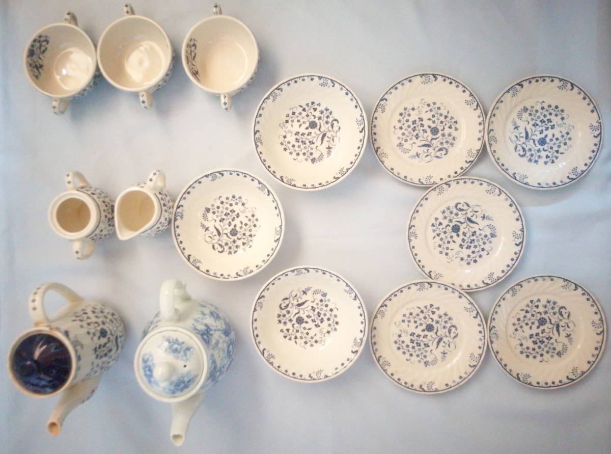 - (G)ティーポットセット ソーサー すずらん柄 シュガーポット お皿 器 ミルクピッチャー