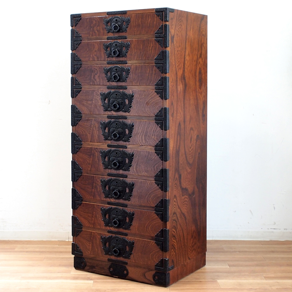- 岩谷堂箪笥 立長タンス 和モダン 欅材 民芸家具 和家具 漆塗り 小物たんす スリムチェスト