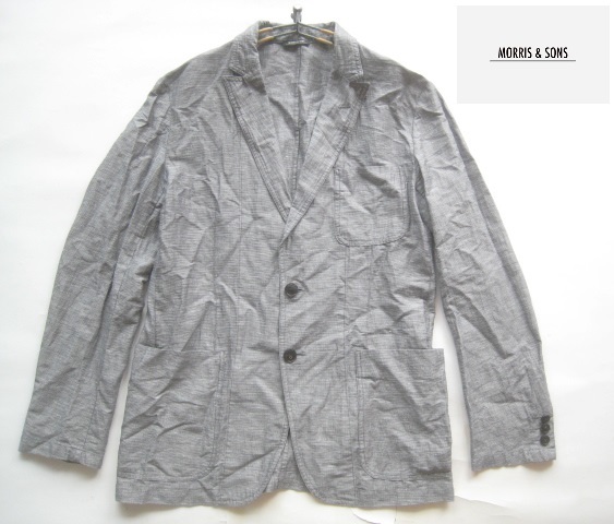 - 美品!!モーリス&サンズ MORRIS&SONS*B-SHOP購入 麻48% リネンコットン2つボタンアンコンジャケット 2 実寸M グレー