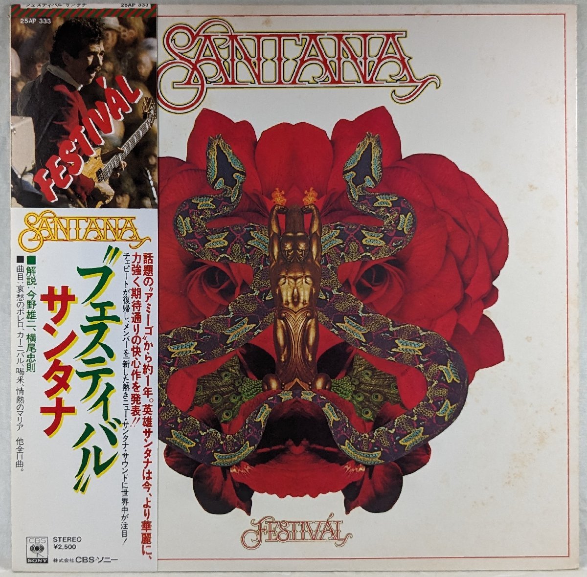 25AP333 CBSソニー 中古LP「FESTIVAL / フェスティバル」santana / サンタナ SIDE A1 carnival / カーニバル2 let the children play / 子供たちの戯れ3 jugando / 喝采4 give me love / ギヴ・ミー・ラヴ5 verao vermelho / 真夏の夢6 let the music set you free / レット・ザ・ミュージック・セッツ・ユー・フリー SIDE B1 revelations / 哀愁のボレロ2 reach up / リーチ・アップ3 the river / 大河のように4 try a little harder / 明日への祈り5 maria caracoles / 情熱のマリア 盤質:良好ジャケット:経年シミあるも、まずまず良好帯付きライナー付きインナースリーヴ付き 送料は送料・配送についてをご覧ください。中古レコードに関してご理解のうえ入札ください