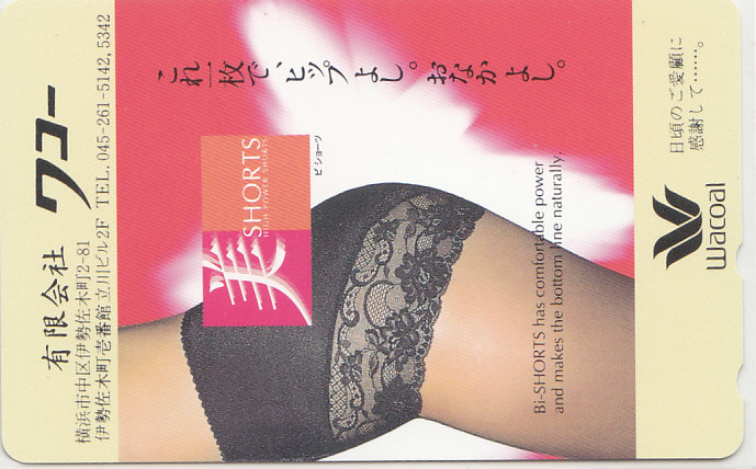 - ワコール ㈲ワコー/下着 お尻 【テレカ】 G.8.28a ★送料最安60円~