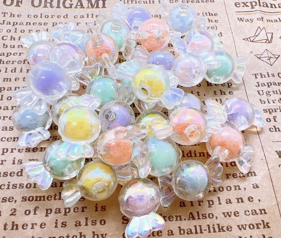 - キャンディービーズ [30個] デコパーツ プラパーツ オーロラ クリア