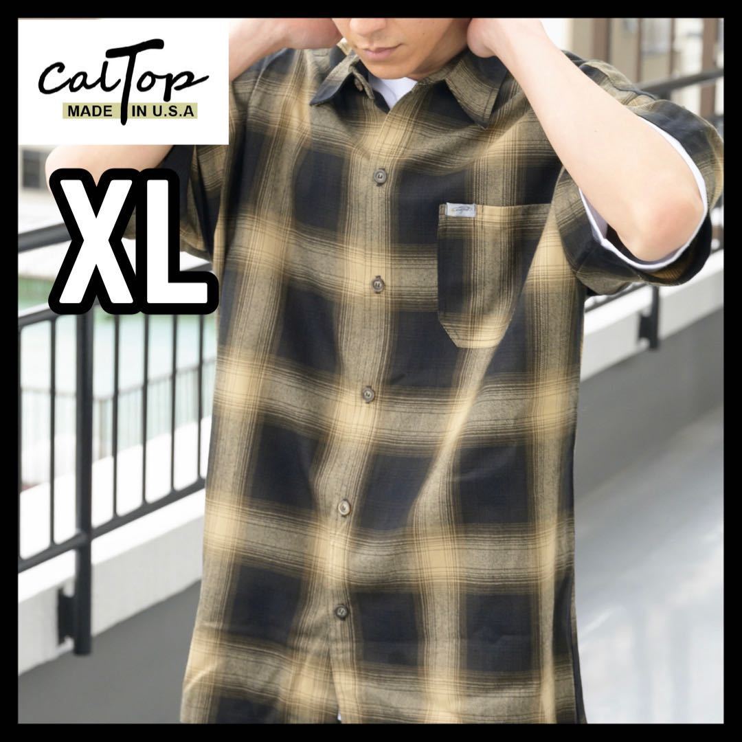 > 新品未使用 CALTOP キャルトップ 半袖チェックシャツ ブラウンカーキ XLサイズ OMBRE CHECK S/S SHIRTS オンブレチェック