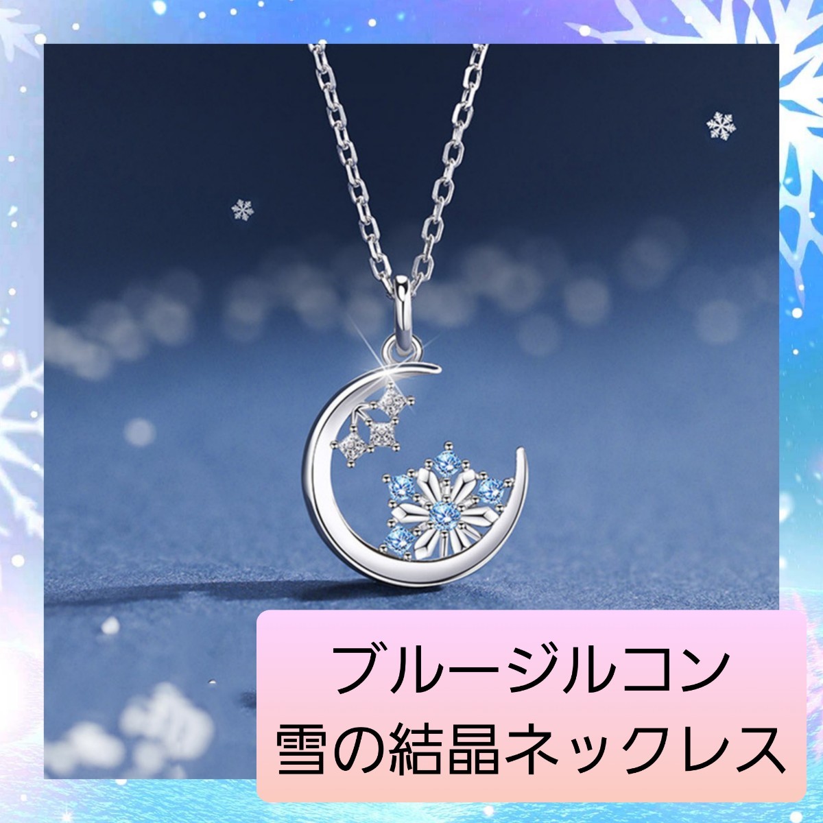 - 月と雪の結晶のシルバーペンダント ブルージルコン ブルームーン 02