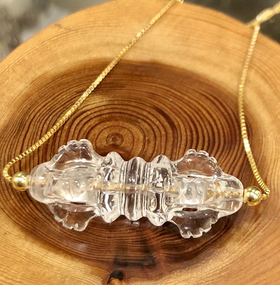 - 激安卸価格 天然水晶バジュラ ペンダント チベット密教金鋼杵 ピンチェーン付き