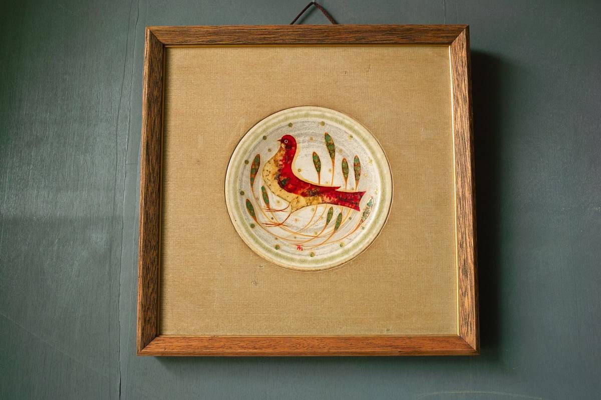 - 【7508】村上達夫 サイン有 陶板 アートフレーム ウォールアート 工芸 鳥 ヴィンテージ ビンテージ 陶額 検)アラビア テネラ ロイコペ