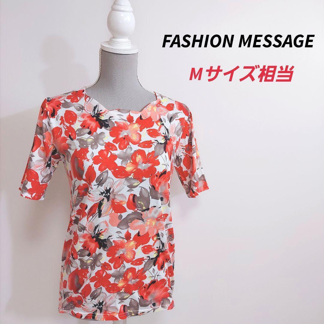 > FASHION MESSAGE アート風フラワー柄Tシャツ・花柄 サイズ表記なし ラインストーン飾り 赤・白ほか ファッションメッセージ81074
