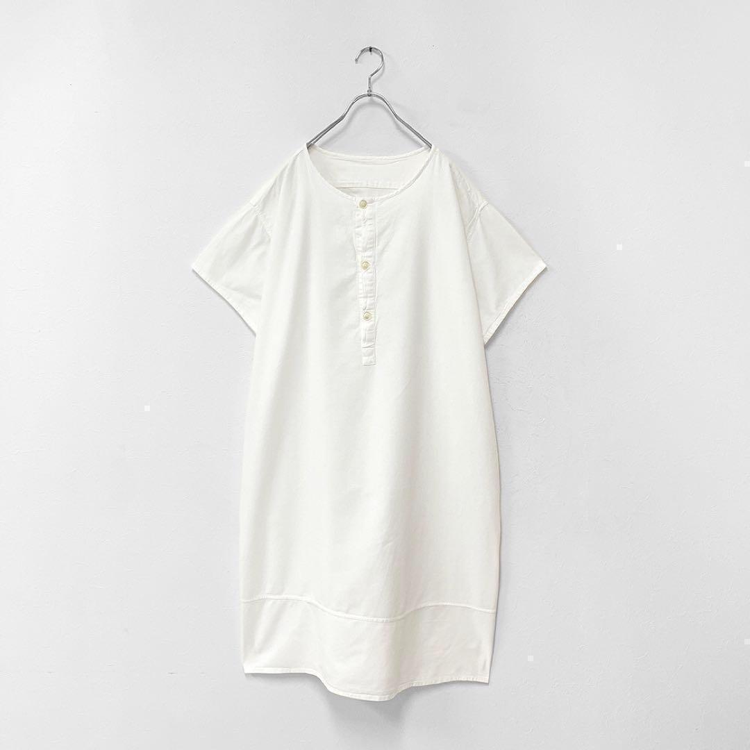 - フランス ヴィンテージ ノーカラー プルオーバー 半袖 グランパシャツ ワンピース 白 XL レトロ