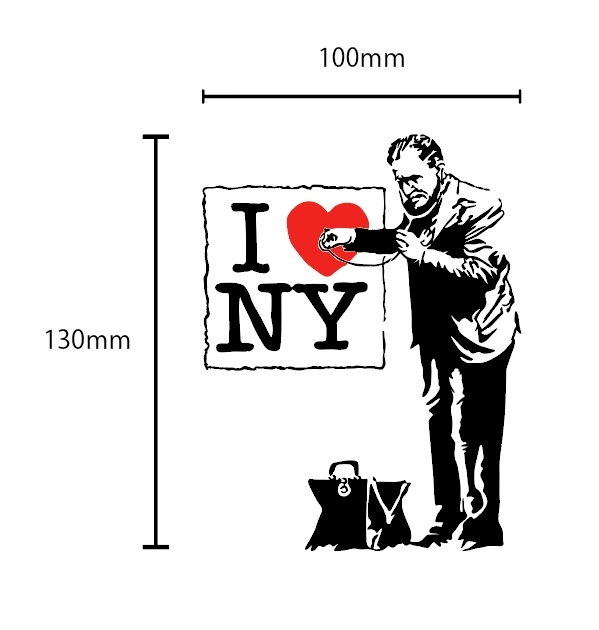 > 自作カッティングステッカー バンクシー / BANKSY 精密 2色貼り合わせ I LOVE NY / アイラブNY 10×13cm ネコポス対応 同梱可[S-439]