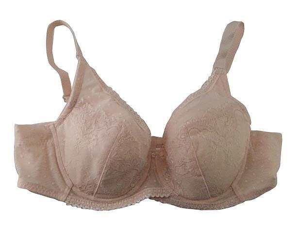 > SI4854◇ 新品 フルカップ ブラジャー カップ 刺繍 脇メッシュ 肩ひも調節可 谷間パールビーズ付 D95サイズ シルクアイボリー 送料 350円