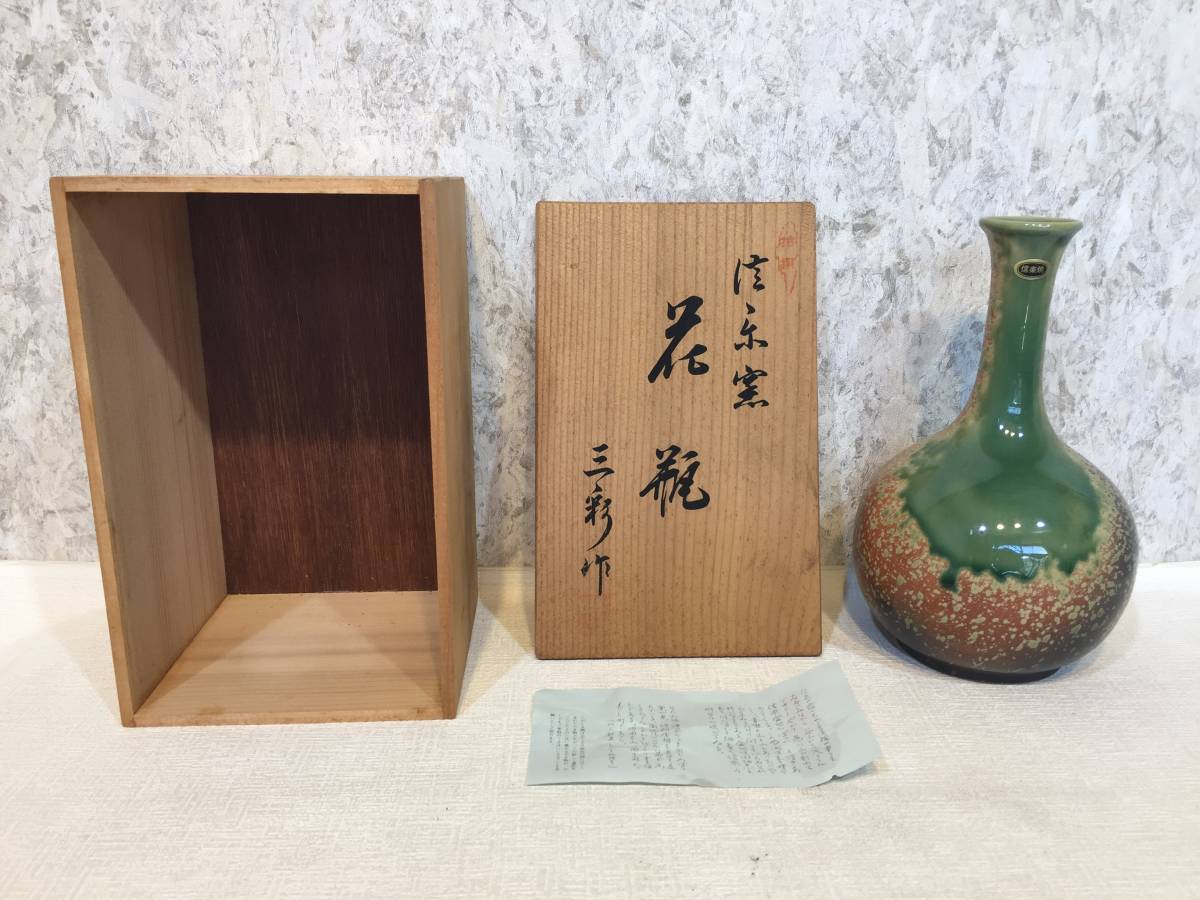 > 『 信楽焼 花瓶 』 三彩作 陶器 壺 壷 花器 一輪挿し 共箱付き 民芸品 雑貨 レトロ アンティーク ★古時家★
