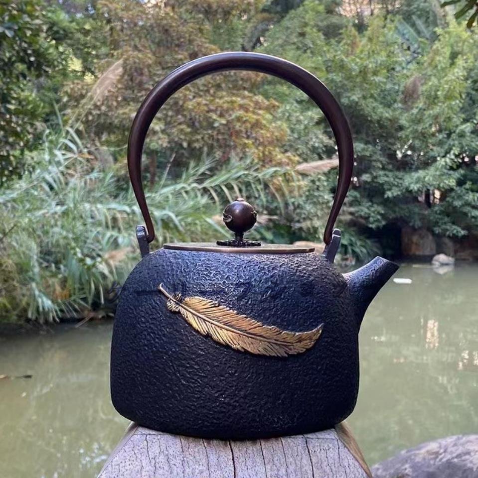 - 羽型 提梁壺★職人手作り★ 鉄びん 鉄分補給 未塗装鉄器★1.3L