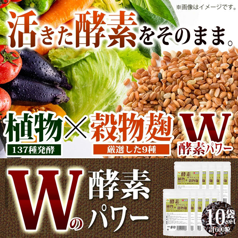 > まとめ売り 酵素麹粒60粒 10袋セット計600粒 こうじ酵素 麹 酵素サプリ 熟成137種植物発酵エキス+厳選9種穀物麹 ダブル酵素パワー