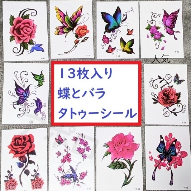 - 送料無料 ★13枚★ 貼るだけ ★タトゥーシール バラ 蝶 No.29 E