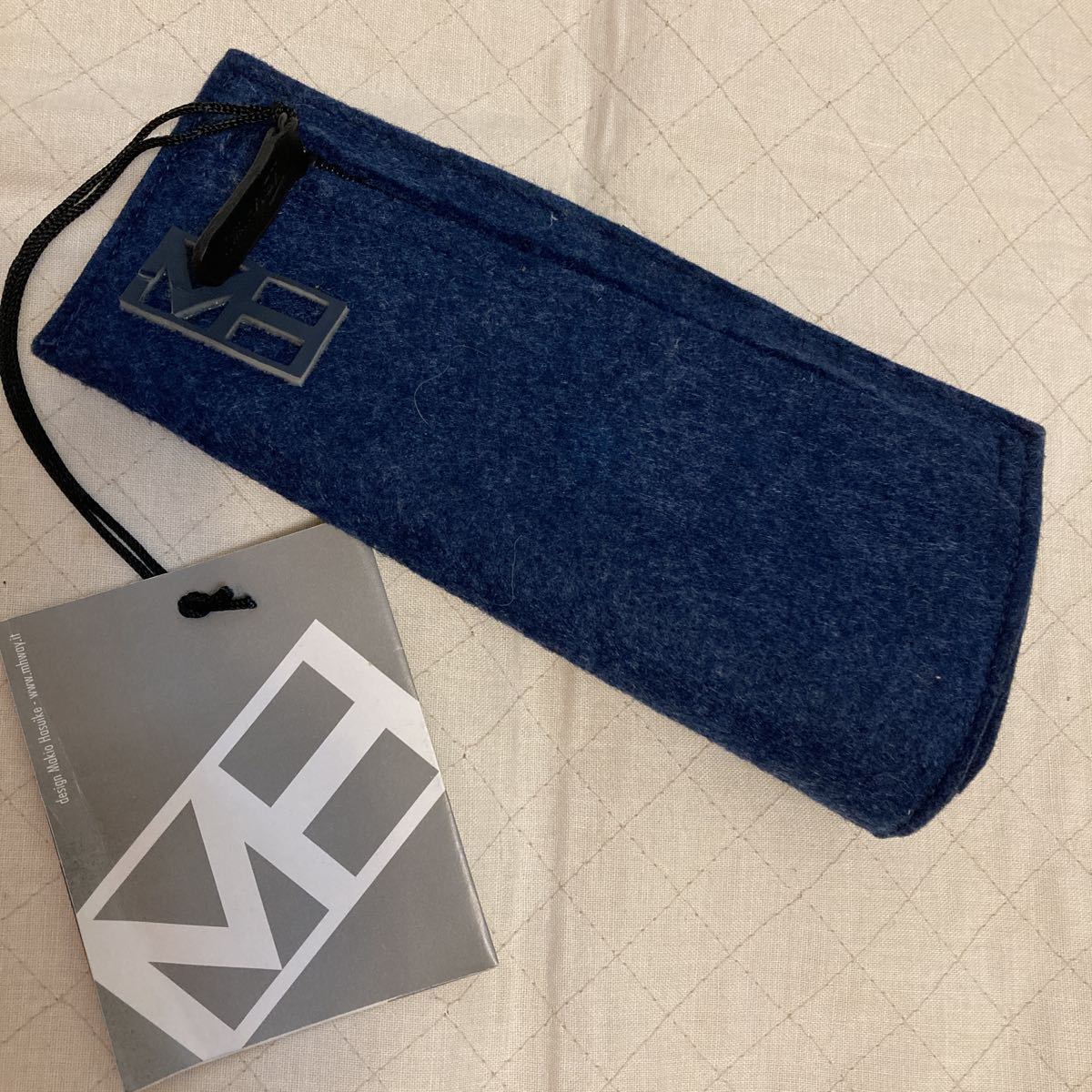 - MH WAY ペンケース 紺 フェルト ファスナー開閉式 レザー使い ロゴマーク入り タグ付き 未使用 送料無料