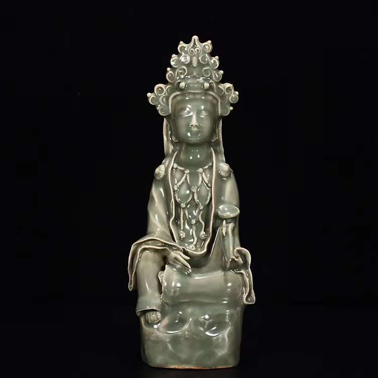 - 宋時代 龍泉窯 梅子青釉 如意觀音 唐物 中国美術 工芸品 高さ31cm 直径12cm 【HB717】