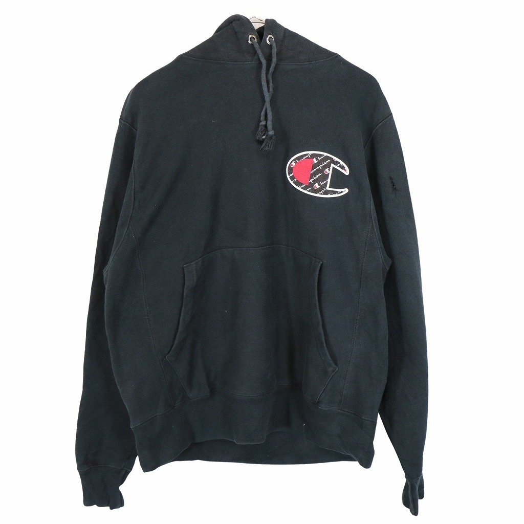 > Champion チャンピオン ワンポイントロゴ リバースウィーブパーカー 刺繍 アメカジ フーディー ブラック (メンズ S) 中古 古着 O3452