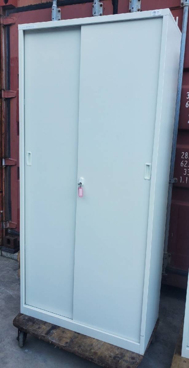 - M2129-5 書庫 オフィス家具 鍵付き W880×D380×H1860㎜ スリム キャビネット 収納 棚板4枚 3枚スライド 引き違い 引き戸