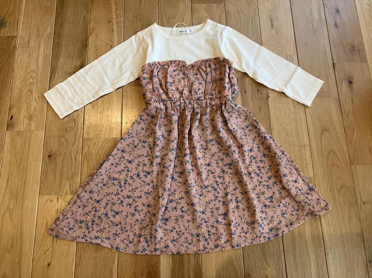 - 新品 ペアマノン 女の子 ベビー 長袖 シフォン 小花柄 ワンピース 90センチ
