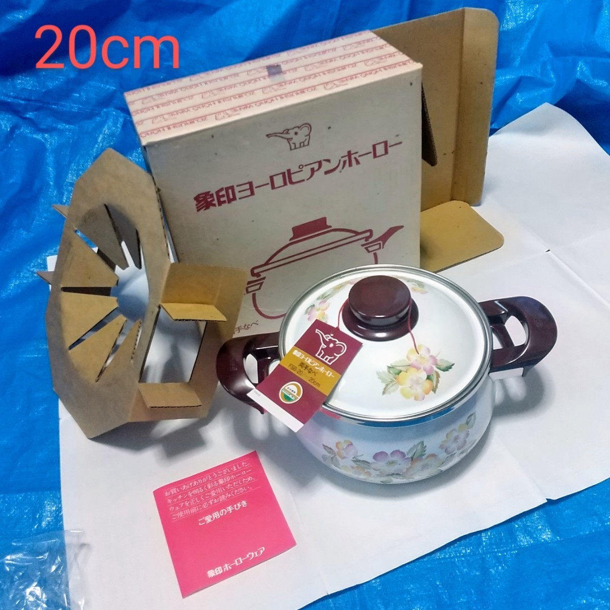- 【未使用】象印 ヨーロピアン ホーロー 両手鍋 20cm 花物語 #昭和レトロ
