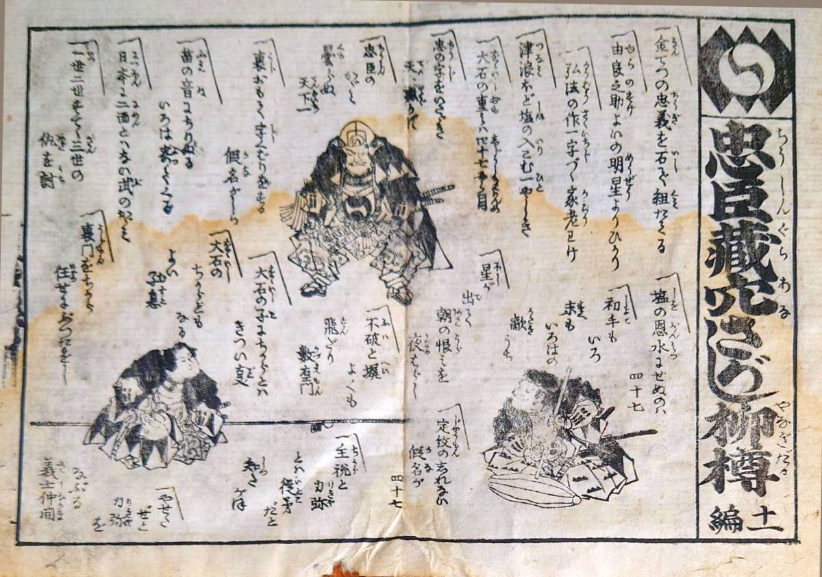 - f230900807〇一枚刷り 浪花みやげ第2編第3集 忠臣蔵穴さがし柳樽 11編 ことば遊び しゃれ なぞ 判じ絵 見立番付 天保年間 塩屋喜兵衛板