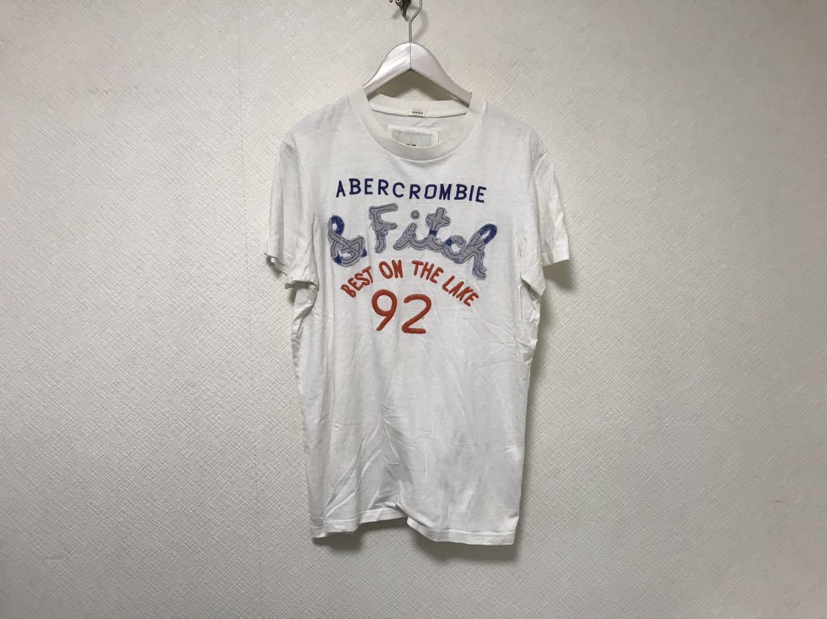 - 本物アバクロアンドフィッチAbercrombie&Fitchコットン刺繍ロゴ半袖Tシャツメンズサーフアメカジミリタリー白ホワイトXLマカオ製