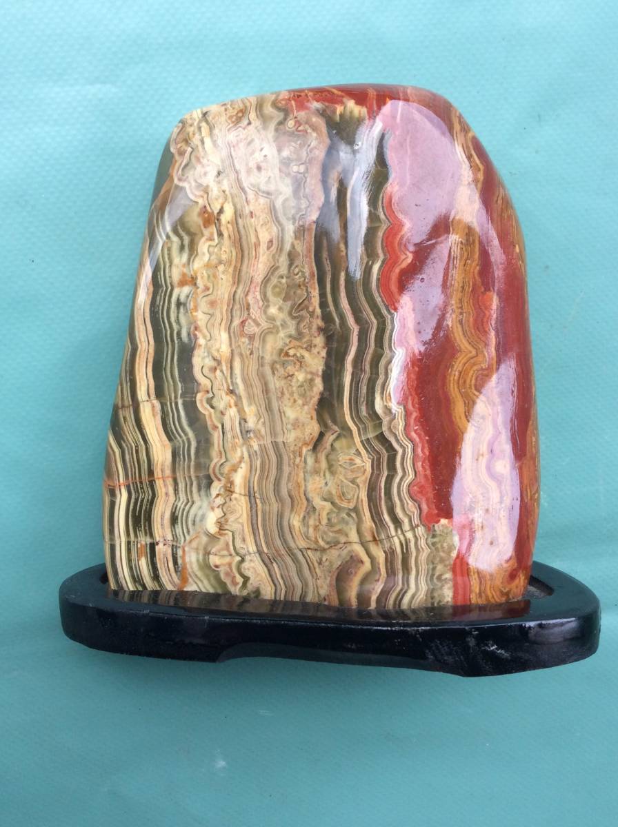 - とても美しい鑑賞石 縞メノウ オニキス 天然石 水石 重量台座込み1452g