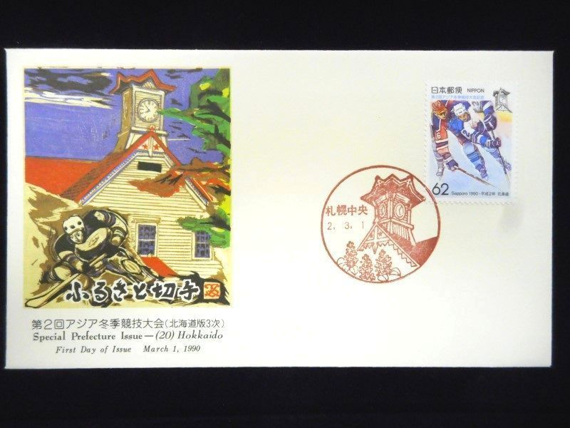- ふるさと切手 第2回アジア冬季競技大会 1990年3月1日 札幌中央 初日カバー FDC 日本切手 M-201