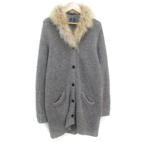 - メルローズ MELROSE ニットカーディガン ロング丈 ファー付き アルパカ混 ウール混 F 杢グレー /FF28 レディース