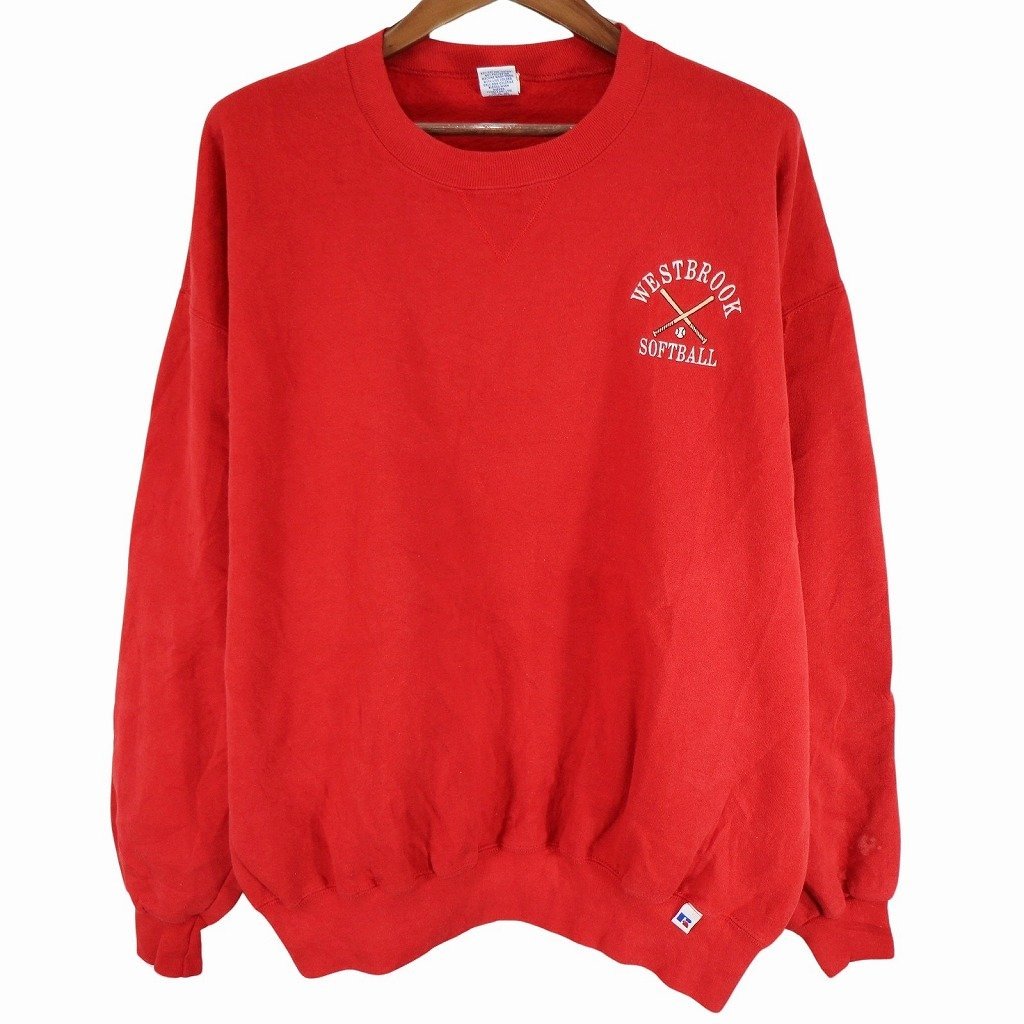 - 90年代 RUSSELL ATHLETIC ラッセル トレーナー スウェット 大きいサイズ ワンポイント刺繍 レッド (メンズ XXL) 中古 古着 O5039