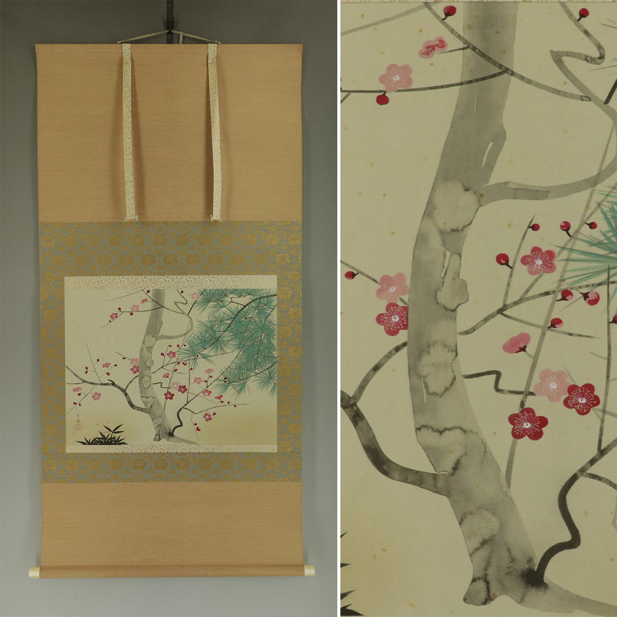 - 【巧芸】小林古径【松竹梅】◆絹本◆合箱◆掛軸 t04087