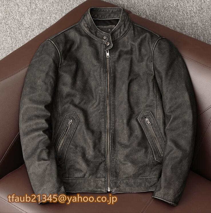 - ライダースジャケット レザージャケット 本革 牛革 革ジャンコート ヴィンテージ 本革コート アメカジ S~5XL ダークグレー