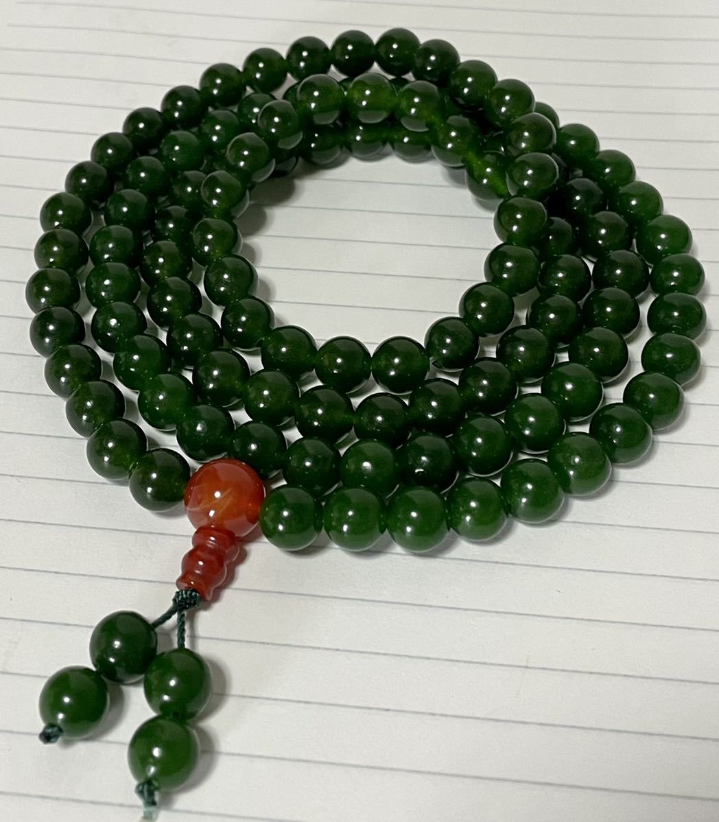 - グリーンメノウ 108珠ブレスレット アクセサリー ネックレス 天然石 アゲート パワーストーン 魔除 お守 男女兼用 数珠 念珠