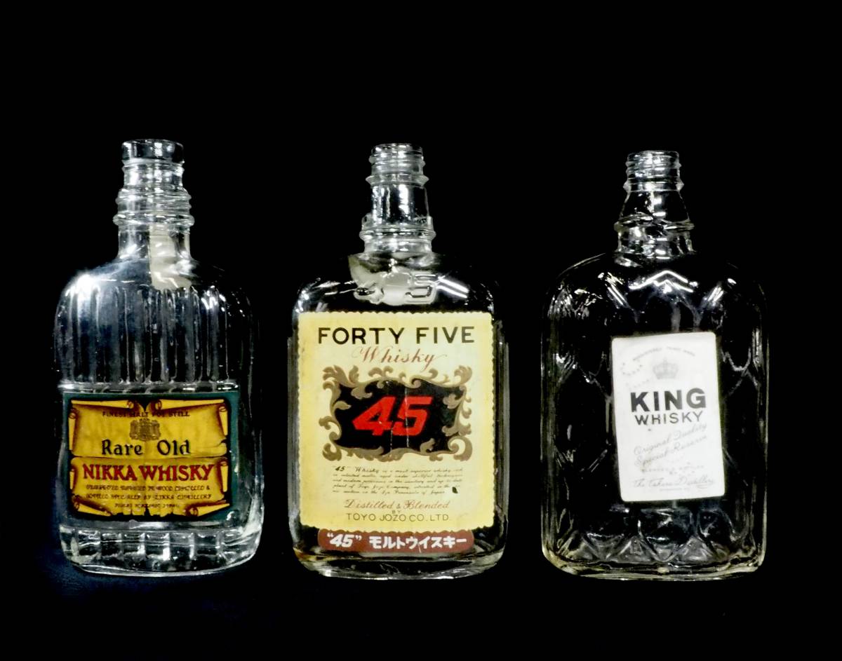 - 昭和レトロ ウイスキーボトル 3本セット 大日本果汁時代「Rare Old」東洋酒造 「FORTY FIVE」 宝酒造 「KING WHISKY」終売品 OTK510