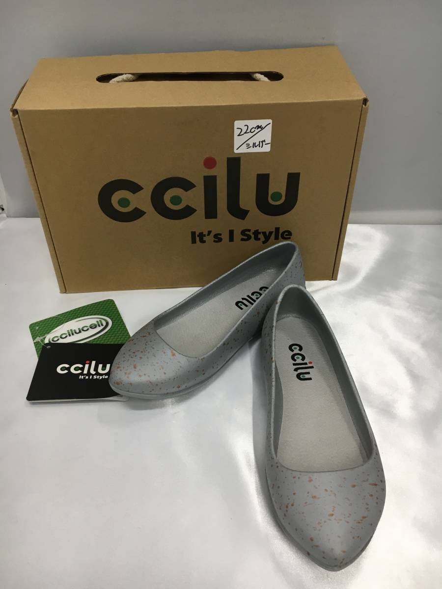 > 新品未使用品 ccilu milano パンプス フラットシューズ シルバー 銀色 22㎝ スリッポン レインシューズ