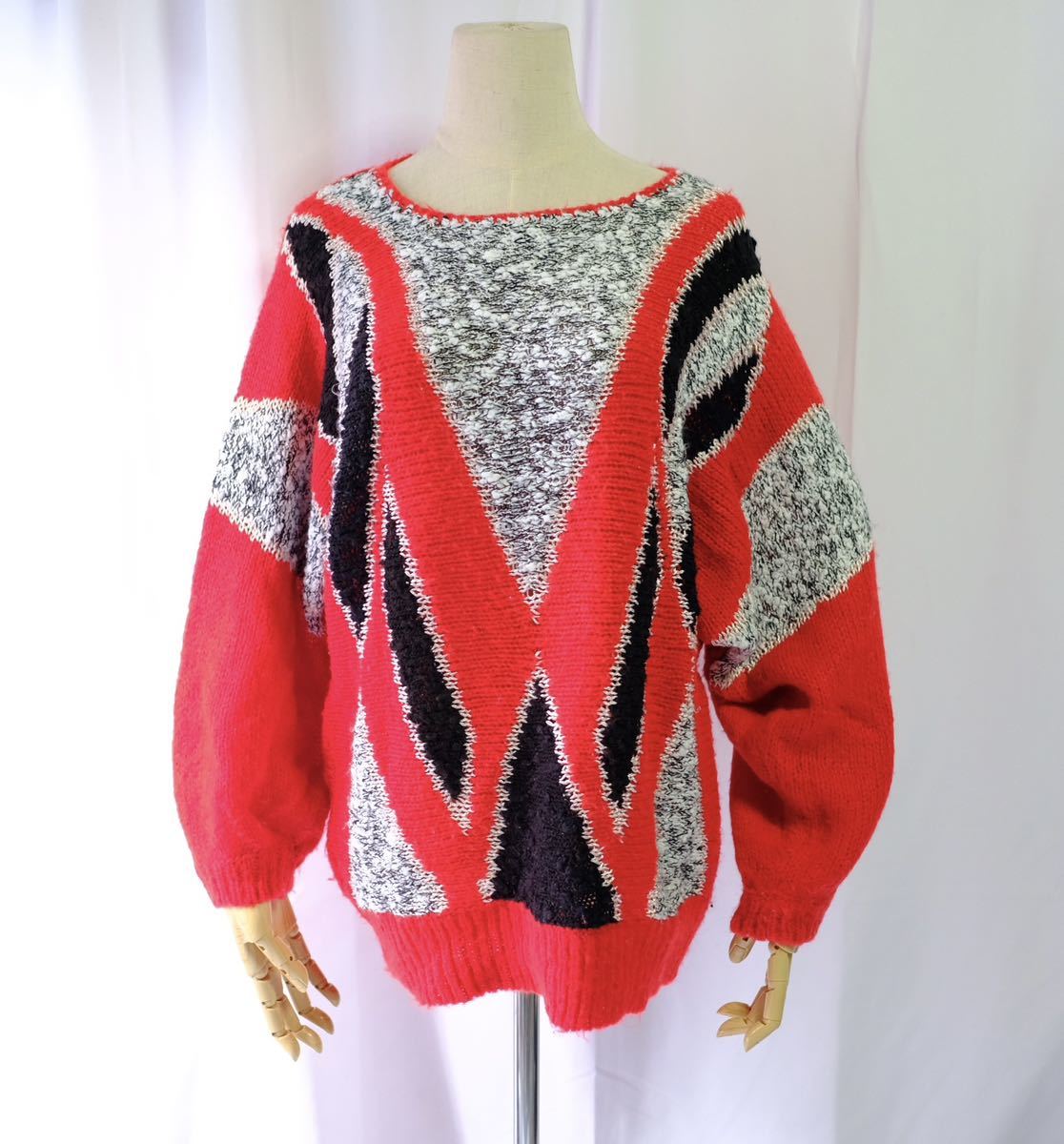 - 【1980s】ビンテージ デザインニットセーター 赤 アート ドルマンスリーブ 古着屋 ユーロ ヴィンテージ